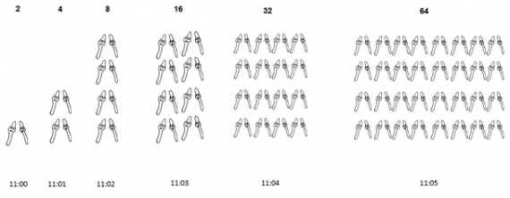 O 11:59 bakterie zajmowały już połowę szalki. Co stanie się po kolejnym podwojeniu?