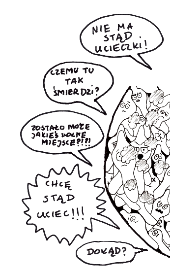 Bakterie skonsumowały całą pożywkę i zaczynało być im bardzo niedobrze od toksyn, które same wyprodukowały. Można się domyślać, jak wtedy wyglądały ich dialogi: