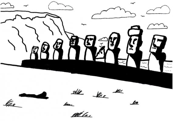 Nie wiadomo skąd wziął im się pomysł na rzeźbienie wielkich głów ze skały i ustawianie ich jedna przy drugiej. W każdym razie zaczęli to robić. To znaczy, podobno w ten sposób czcili swoich przodków, a ci przodkowie z kolei w zamian za te pomniki mieli na przykład sprawiać, że będzie dużo jedzenia i będzie ładna pogoda.