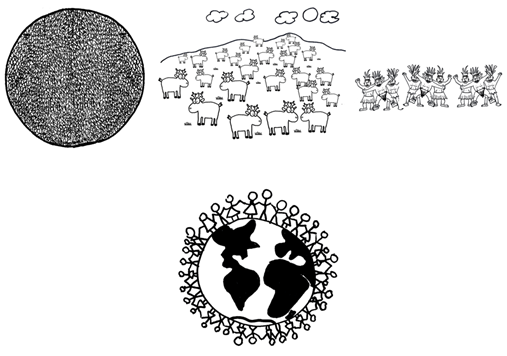 Wszystko ładnie, pięknie, ale co do tego mają ludzie na całym świecie? Otóż ludzie znajdują się dzisiaj w punkcie numer 3 (nie, nie oznacza to wcale, że zalewa nas fala bakterii, które zaraz nas zjedzą!!!). Ludzie – jako populacja – znajdują się w punkcie numer 3. I mimo, że znamy się na matematyce, to niestety nie jesteśmy w stanie policzyć wszystkiego gołym okiem, ponieważ nasz świat jest bardzo duży i skomplikowany (skomplikowany głównie przez Dorosłych oczywiście, którzy już sami się w tym nie łapią, tacy są z nich spryciarze!). Oto jak sprawa się przedstawia:
