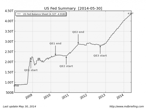 Rysunek 1. Bilans FED. Skoro jest tak dobrze i kryzys się skończył, to dlaczego to robią? Kiedy FED sprzeda kupione papiery? I kto je kupi?