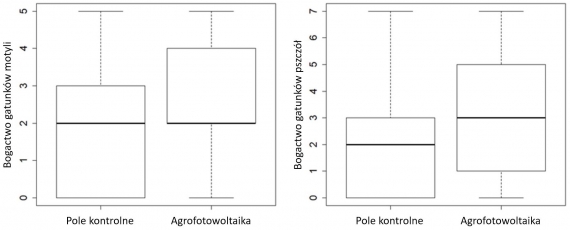 Ilustr. 4. Bogactwo gatunków motyli i pszczół na polach kontrolnych i APV. Źródło Randle-Boggis i in., 2020