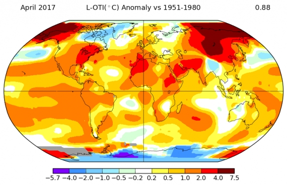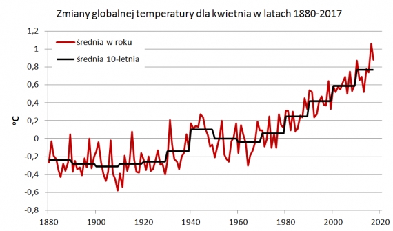 Kwiecień 2017 był cieplejszy od kwietnia 2010 roku, pomimo tego, że obecny występuje po ochładzającym klimat planety zjawisku La Niña, a ten z 2010 roku był po podnoszącym temperaturę El Niño.