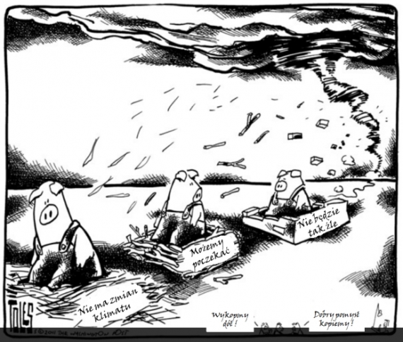 serii trzech rysunków Toles’a przetłumaczonych w wersji polskiej.